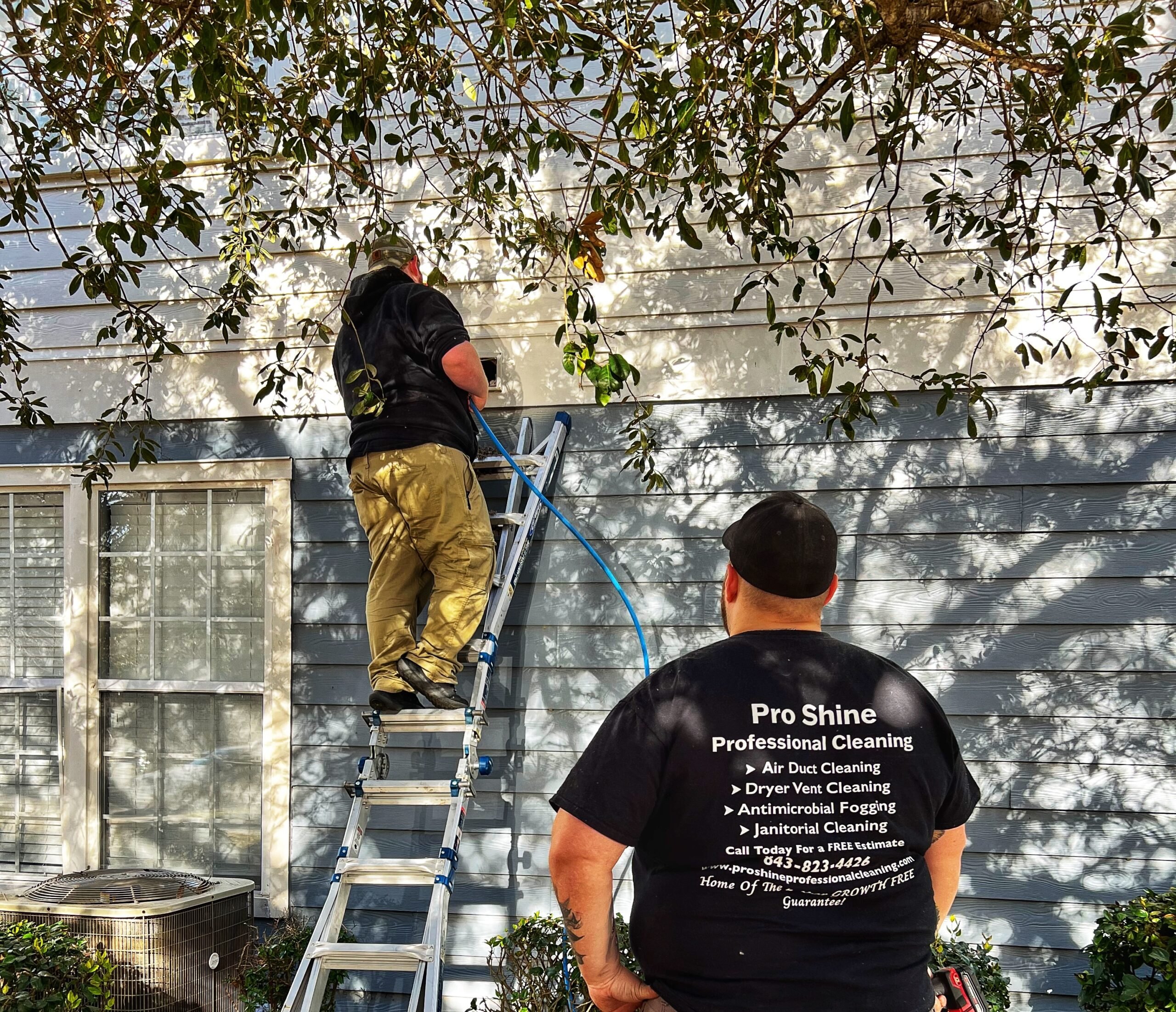 When you choose Pro Shine for your dryer vent cleaning, you’re getting thorough service that goes beyond just removing surface lint. Our certified technicians inspect your entire dryer vent system from the inside out, checking the vent line, exterior exhaust, and dryer connection for blockages, damage, or potential safety issues. We use specialized equipment including powerful vacuums and rotating brushes to remove all lint, debris, and obstructions from your vent system, ensuring proper airflow and optimal dryer performance. Our service also includes cleaning your dryer’s lint trap housing and checking for any vent damage that could cause future problems. After we’re finished, you’ll notice your clothes dry faster, your energy bills decrease, and your dryer runs cooler and quieter than it has in years.